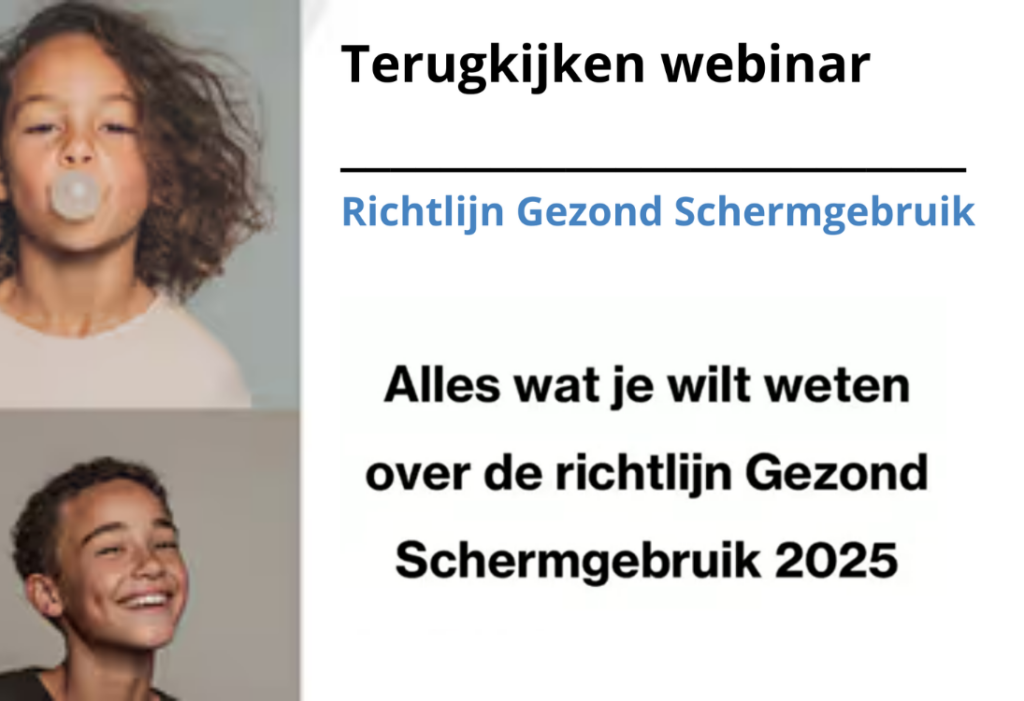 In het webinar ‘Alles wat je wilde weten over de Richtlijn Gezond Schermgebruik’ interviewde Freek Zwanenberg de auteurs Helen Vossen en Ina Koning. Zij delen praktische tips over schermtijd en leeftijdsadviezen. Kijk het webinar terug via YouTube.